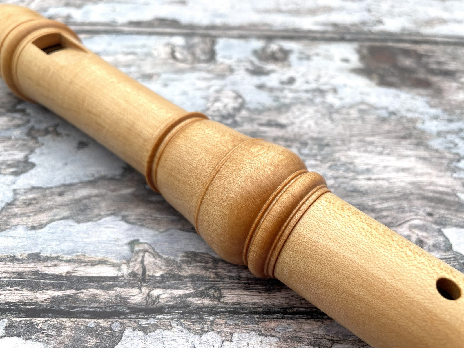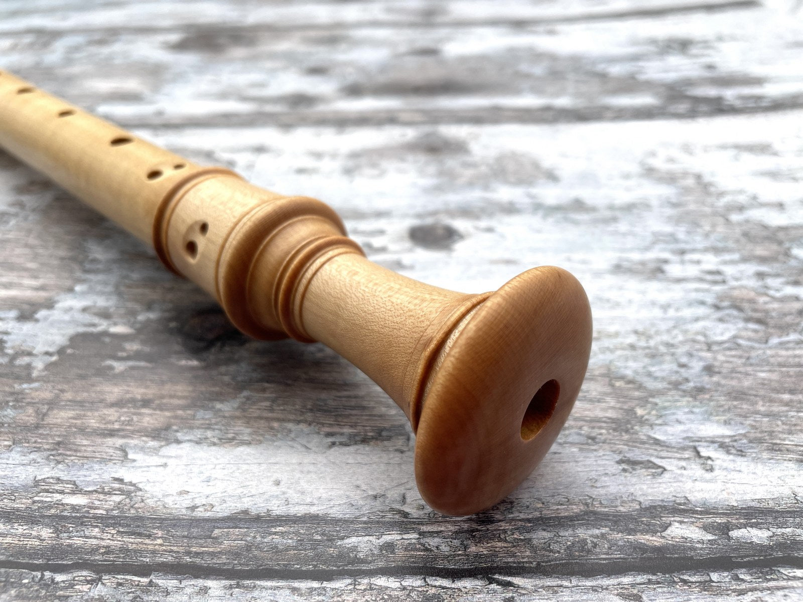 Su ligereza es tradicional de maderas como el arce, y su agarre es bastante cómodo, aunque las distancias en la mano derecha son significativamente mayores que en una Stanesby. El arce de Montpellier es un pequeño árbol que produce una madera dura, densa, bastante parecida a la madera de boj, y que adquiere un hermoso tono dorado con el tiempo.